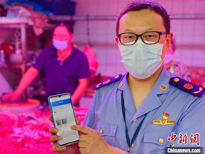 宁波市市场监管部门执法人员在检查动物产品在“浙食链”系统上的追溯信息。 宁波市市场监管局供图