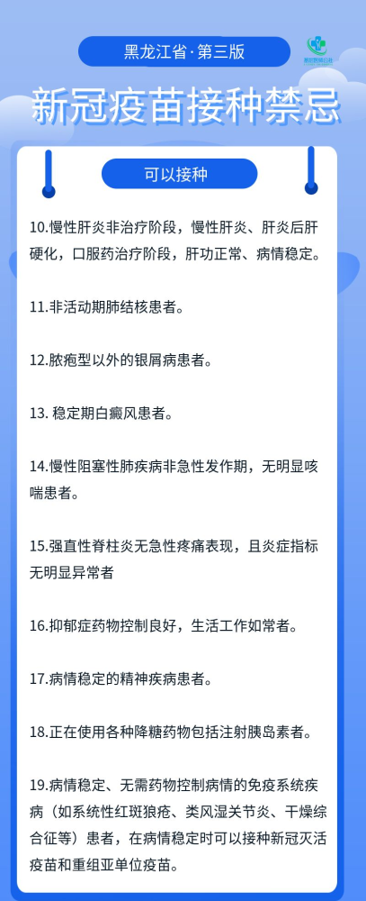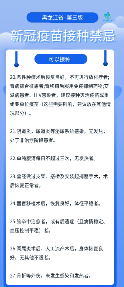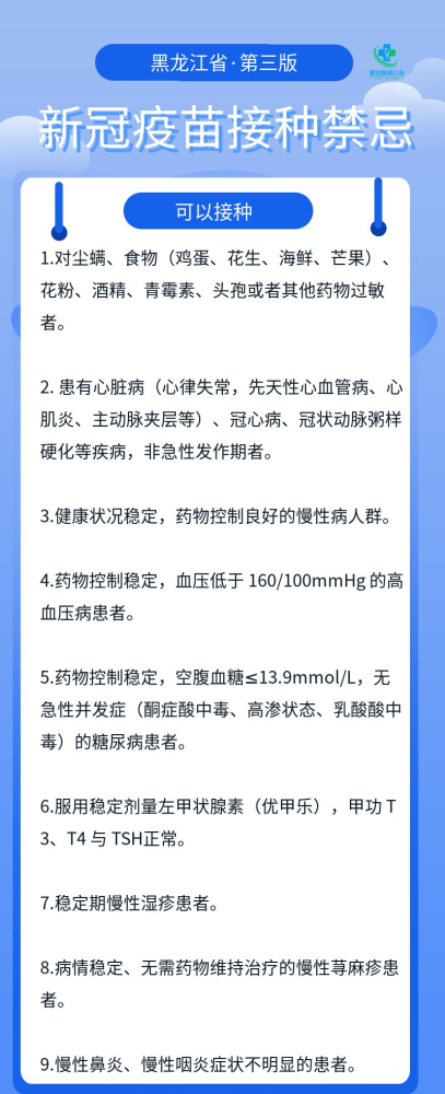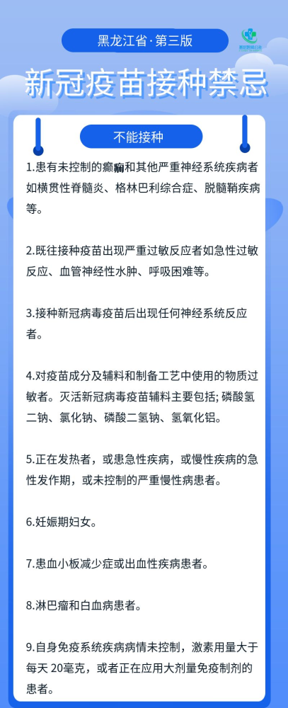 为进一步落实好新冠病毒疫苗接种工作,及时为公众和接种人员提供新冠病毒疫苗,黑龙江省卫健委制定《新冠病毒疫苗接种禁忌和注意事项指引(第三版)》。