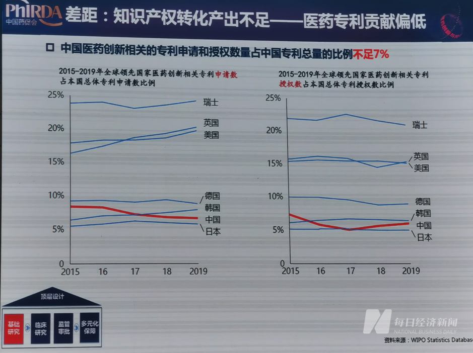 中国医药创新专利总占比偏低 图片来源:实习记者 林姿辰 翻拍自演讲PPT
