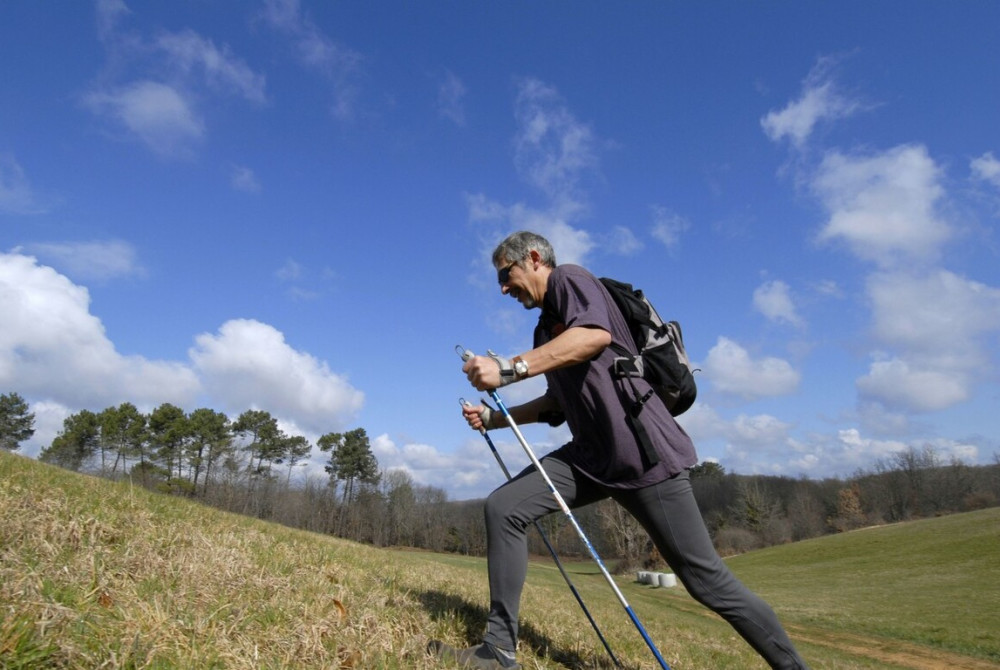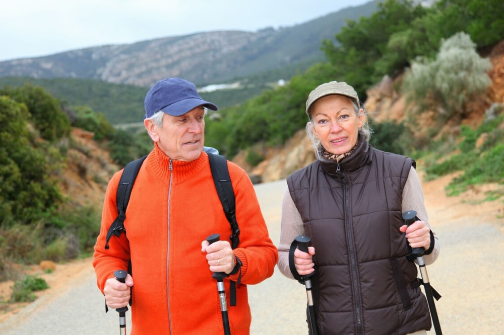 选择爬山步行的老年朋友,用登山杖是更好的选择,登山杖有助于减少下坡时对膝盖带来的冲击力。
