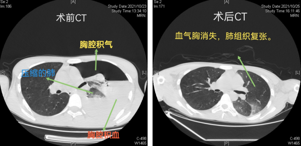 长沙市中心医院(南华大学附属长沙中心医院)胸外科、心脏大血管外科主任、主任医师袁跃西介绍,当天患者由120救护车送到急诊科后,主治医师苏英杰迅速为患者完善胸部CT检查,结果发现其左侧大量液气胸,高度怀疑血气胸。