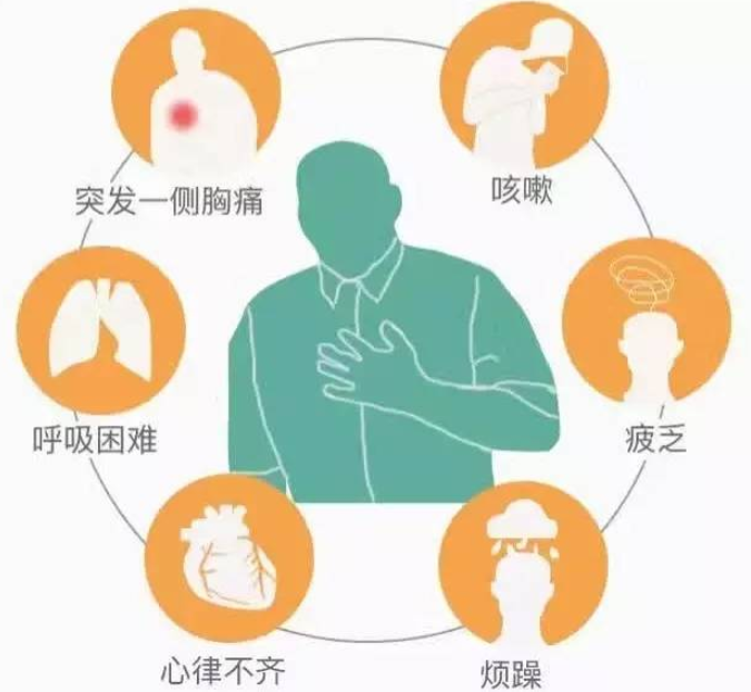 本身有肺大疱的人如果突然出现胸痛症状,就要小心发生了气胸,而对于疼痛比较剧烈并伴有头晕、心慌、出冷汗、口干、面色苍白这些表现的,则要考虑出现了血气胸,一定要尽快到医院就诊,否则大量的胸腔出血将危及生命。