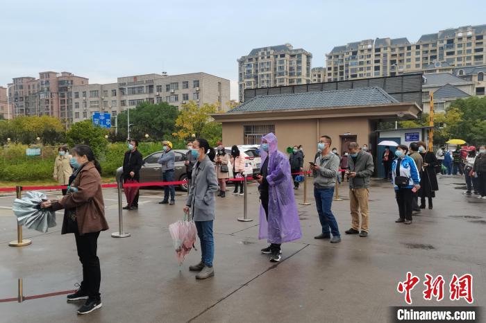 图为11月1日,江西铅山第二轮大规模核酸检测采样有序进行中。 朱潞 摄