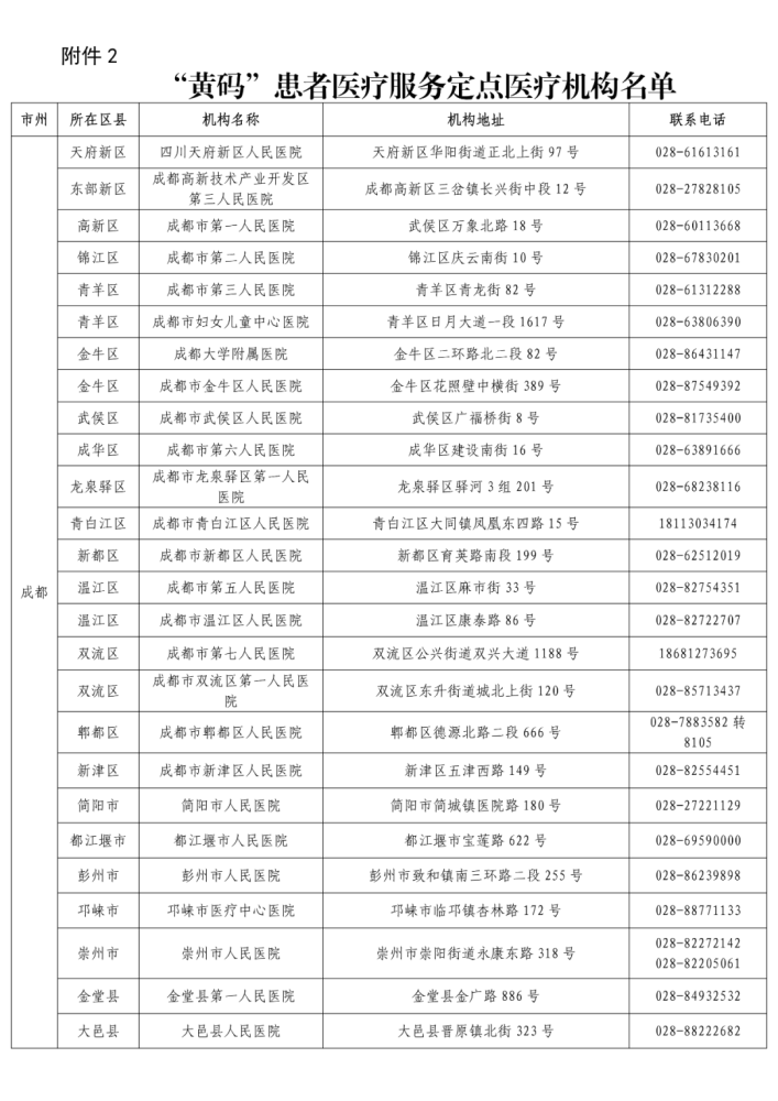 以县(市、区)为单位,指定1-2家综合医院作为“黄码”患者医疗服务定点医院,为“黄码”患者开通绿色通道。