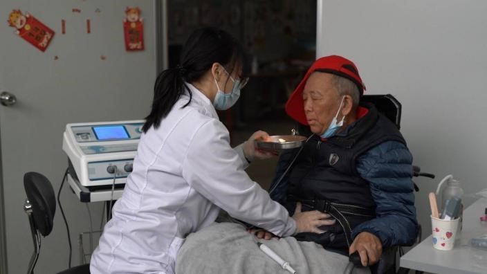 目前在市五医院,有中医康复理疗室和西医康复理疗室,在理疗室中,患者可以接受心肺功能训练、肢体肌肉训练、吞咽功能训练以及各种中西医理疗设备的治疗,帮助老年患者尽快恢复各项技能,回归正常生活。