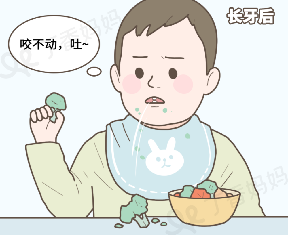 其实即使牙齿没长全,也有一定的咀嚼能力,完全可以循序渐进地给宝宝添加固体类食物,从刚开始的糊状食物逐渐过渡到含颗粒的食物,然后再过渡到条状、块状食物。