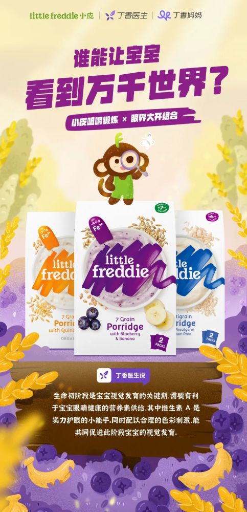 成长初探索阶段还能选择小皮香蕉大米粉、小麦胚糙米谷物粉、蓝莓香蕉七种谷物粉,通过增加多样化谷物和水果,不仅能为宝宝提供更为丰富的营养,同时为宝宝的味觉启蒙打开新世界,培养宝宝「饭霸」潜能。