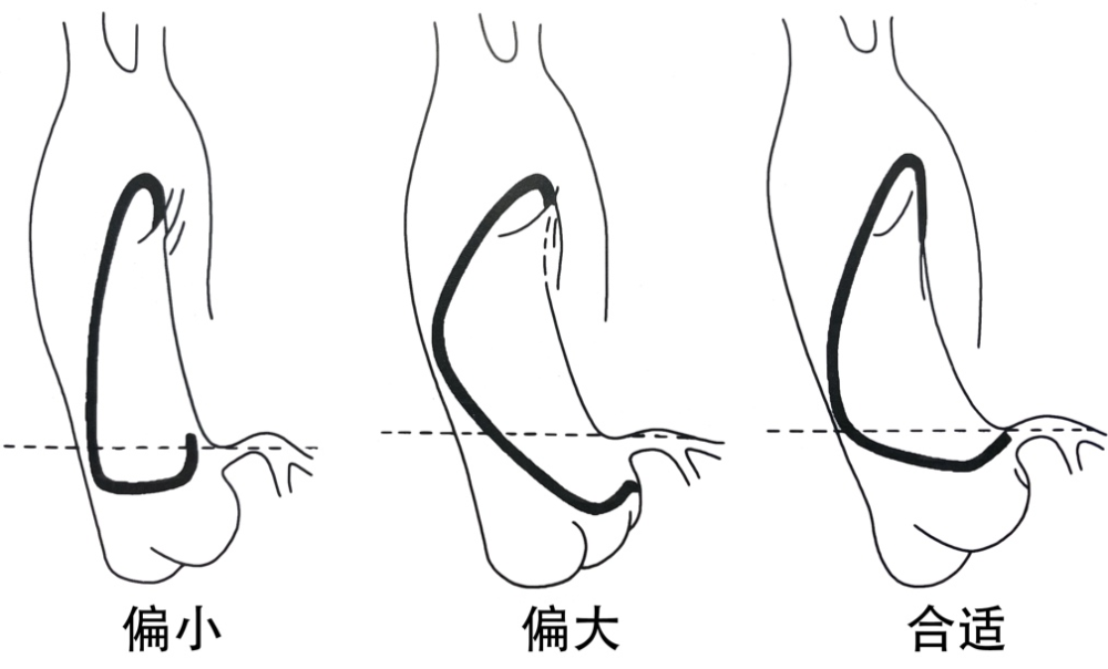 如果导管头端向上、并且有折回倾向,则说明导管过小。