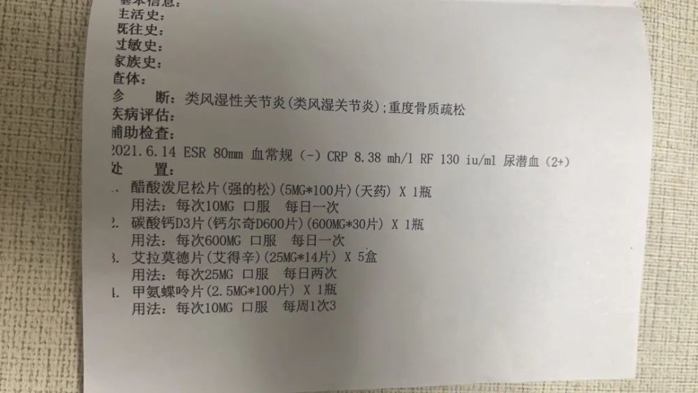 10 月 29 日上午,北京大学人民医院骨科候诊区。穿红色棉外套、戴灰色帽子的李丽娟坐在候诊区的椅子上等待叫号,她的右手中指、无名指关节等处已经肿胀变形,前段时间因为长期吃药,导致骨折疏松进而腰部骨折。她说,自己每隔一个月要来这家医院复诊、拿药,维持治疗,花销在一千多元左右。