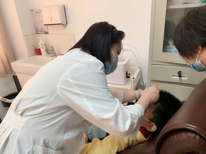 浙二眼科中心苏志涛医生和防盲办沈凌老师是半山居民的“老朋友”了,苏医生熟络地进入诊室做好义诊准备,上月通过转诊手术后的病人陆续要来进行复查,还有一些新病人需要进一步检查明确眼病情况。这个社区就诊的老人居多,也有近视合并散光的孩子需要配镜。防盲办沈凌老师有序地和社区医院余海玉医生登记需要转诊的患者信息,说明注意事项。