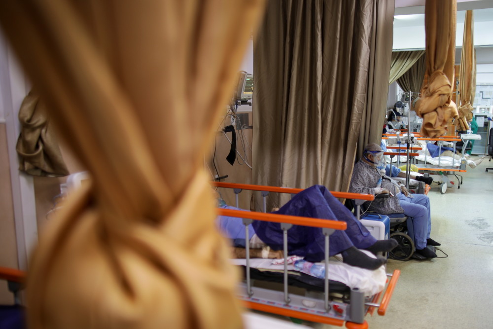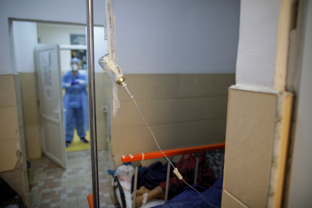 11月4日,新冠患者在罗马尼亚久尔久的医院接受治疗。新华社/路透