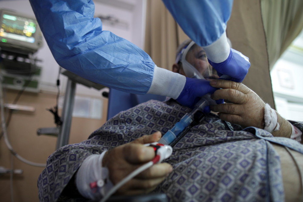 11月4日,一名新冠患者在罗马尼亚久尔久的医院吸氧。新华社/路透