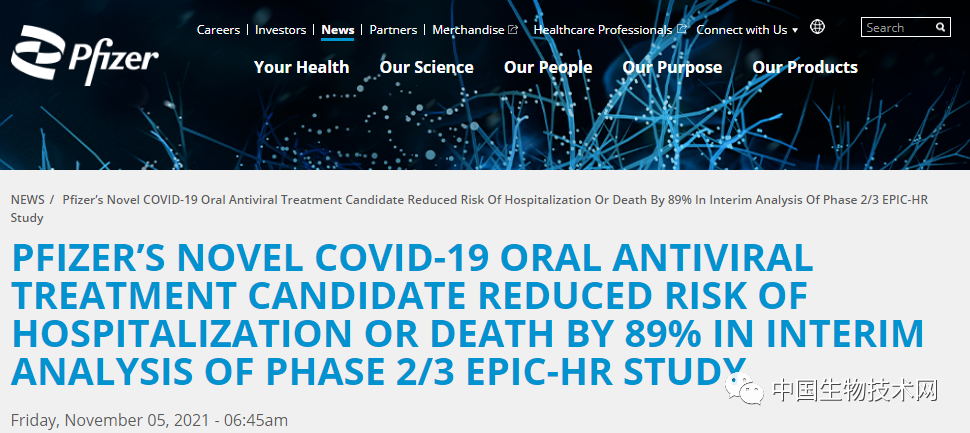 辉瑞口服抗新冠药物2/3期试验结果出炉:将重症死亡风险降低89%