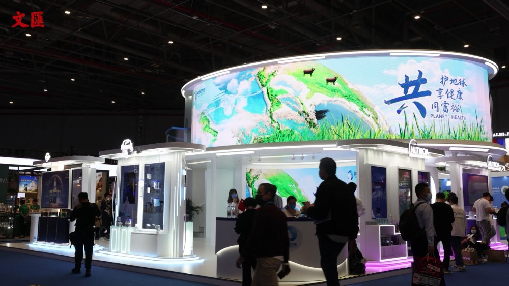 本届进博会2.2馆食品及农产品展区内,全球500强食品企业达能作为进博会的 “铁粉”,以“共护地球,共享健康,共同富裕”为主题,携近140款先进科研健康食品和低碳环保解决方案亮相,整个展区不遗余力地宣传推广“碳中和”理念。