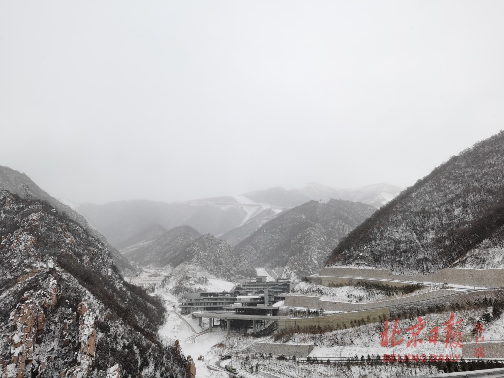 趁着昨晚今晨京城飘雪的机会,北京2022年冬奥会延庆赛区今天上午进行冰雪天气下救护车转运演练。