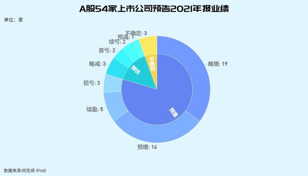 据记者统计,截至11月29日收盘,A股市场共有54家上市公司发布了2021年度业绩预告。其中,近八成公司业绩预喜,包括19家略增、16家预增,5家续盈,3家扭亏。