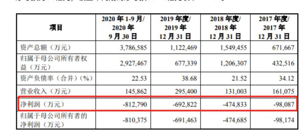 不过,过去3年间,百济神州一直处于巨额亏损之中。招股书显示,百济神州在2018年、2019年、2020年营收分别为13.10亿元、29.54亿元和21.20亿元,净利润分别为-47.48亿元、-69.28亿元、-114.07亿元。