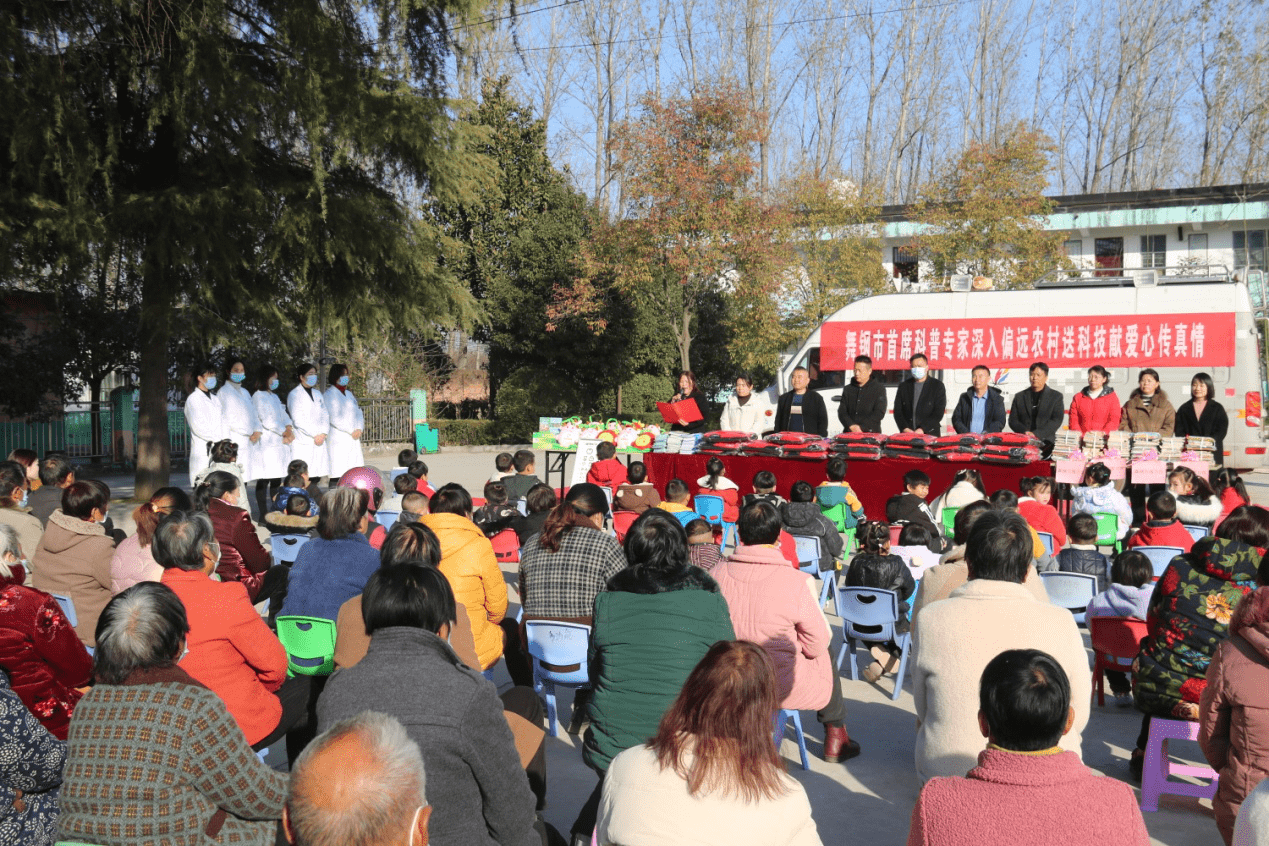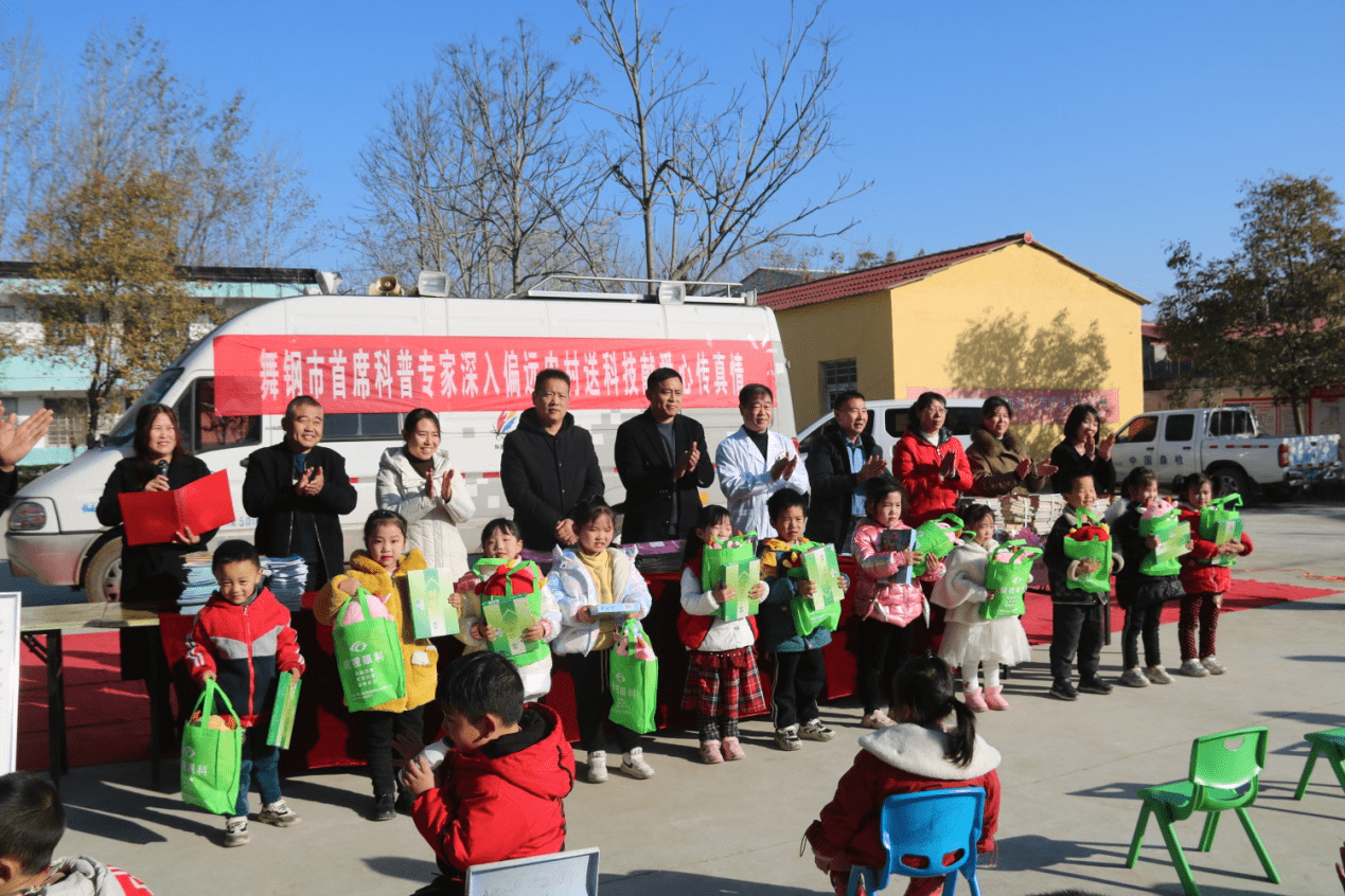该市富康肉牛养殖场总经理何彦玲给小学生购买捐赠60套价值9000多元的过冬棉衣。舞钢锐视眼科现场为师生家长进行视力检查和科普讲座并获授“舞钢市科普教育基地”荣誉证书。该市林业局教授级高级工程师万少侠结合当前农业、林业生产现状,讲解冬季林果病虫害防治技术。