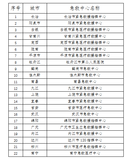 首批上线“无障碍急救功能”城市名单