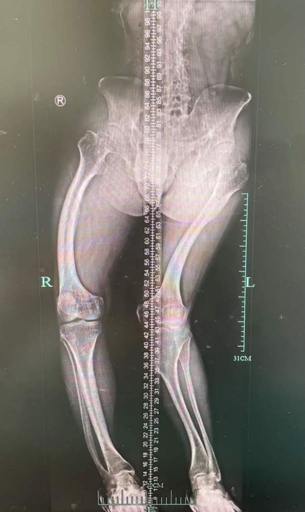 父母连忙带李勇武去医院。经过检查,医生告诉他们,孩子得了“佝偻病”,需要补充维生素D。一家人按照医嘱,每天按时补充维生素D,然而,随着年纪的增长,李勇武的情况却越来越糟糕:脊柱侧弯、膝外翻(X型腿),最让人发愁的是,个子就怎么也长不高了,到了成年,李勇武的身高就固定在了1米48。