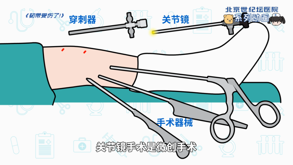 韧带是绑住骨头的弹力带,能维持关节稳定。韧带受伤后,必要时需要进行关节镜手术。