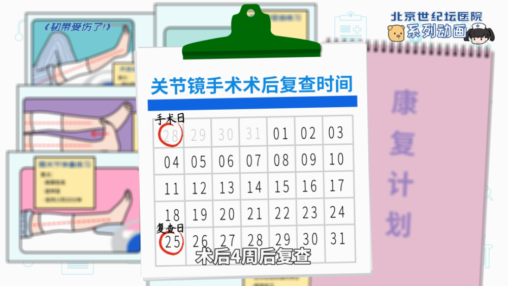 关节镜手术后按照上面的要领进行锻炼,医生会为您定制康复计划,术后4周后复查。