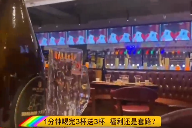 看似挺诱人的,只要一分钟之内喝掉6杯啤酒,体格健硕的成年东北人很多都愿意尝试一下,万一成功了不是还能获得2000元的酒卡吗?