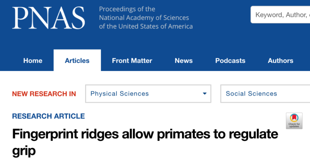 [2]Yum S M, Baek I K, Hong D, et al. Fingerprint ridges allow primates to regulate grip[J]. Proceedings of the National Academy of Sciences, 2020.