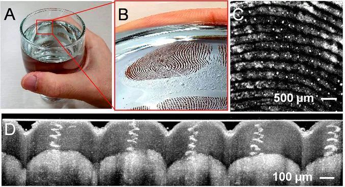 来自英国和韩国的科学家们运用先进的光学成像、红外谱域光学相干断层扫描(IR-OCT)等技术,对“手指抓握玻璃杯”的过程进行了观察。