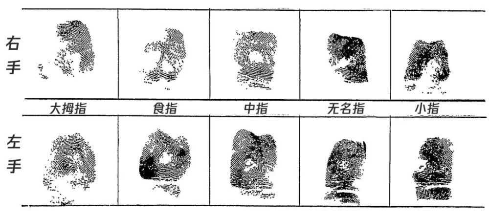 (20世纪初美国劫匪约翰・迪林杰经酸处理后的指纹。来源:文献[14],腾讯医典翻译)