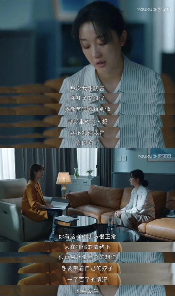 剧中,詹璐走进咨询室,向心理咨询师倾诉,“儿子出生以后,在家里,我就是个免费的保姆。”
