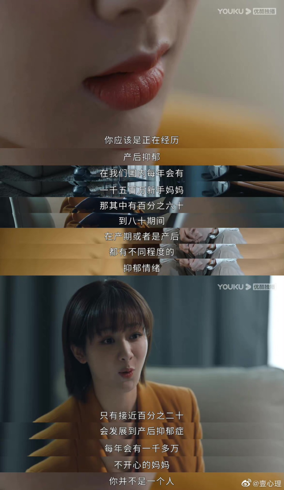 心理上,便是产后抑郁,当生理上的一系列问题还没解决时,却不得不面对身份的转变,如何照顾孩子,处理家里关系、保住事业...
