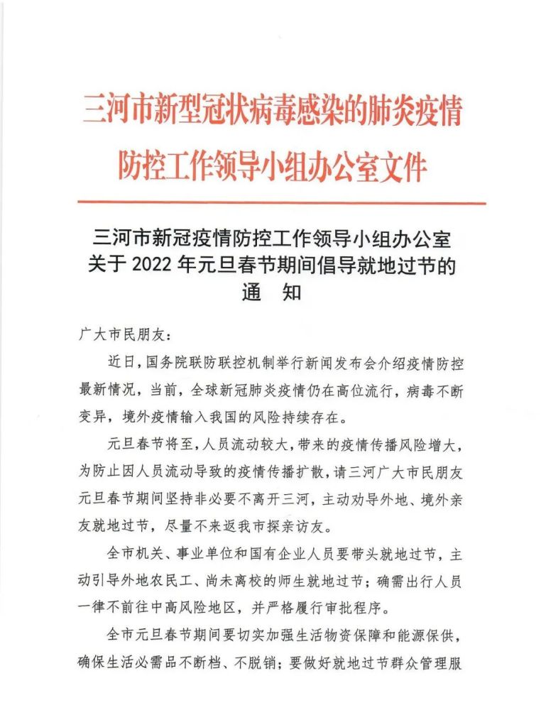 最新通知!河北三河倡导就地过节