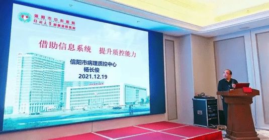 信阳市病理质控中心主任杨长俊向信阳病理同仁分享了如何借助信息系统提升质控能力的专业课题。