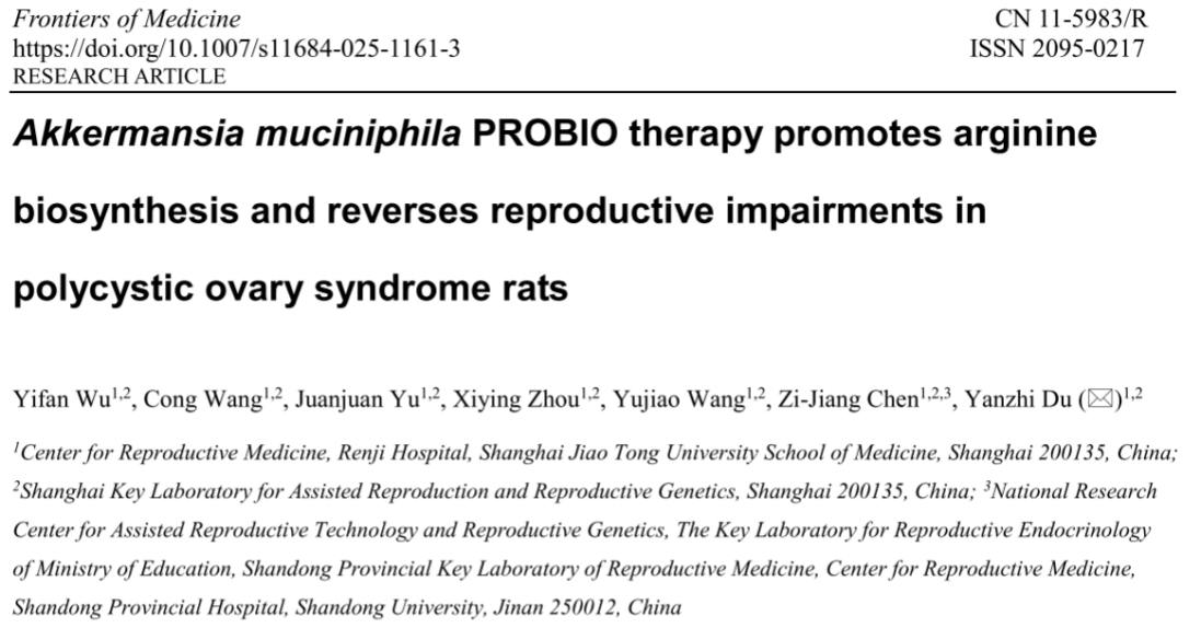 - 陈子江院士/杜艳芝教授团队研究:善恩康AKK PROBIO菌助力逆转多囊卵巢综合征2025-10-24 16:07:15