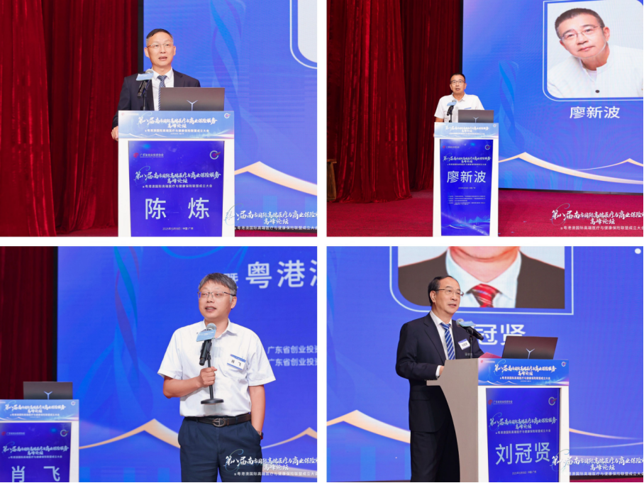 原广东省卫计委巡视员、广东省创业投资协会大健康投融资俱乐部主席廖新波,原广东省卫健委一级巡视员、广东省粤港澳合作促进会医药卫生大健康委员会主任刘冠贤,广东省创业投资协会秘书长肖飞,原广东省人民医院协和高级医疗中心主任、南方国际高端医疗与商业保险服务联盟主席陈炼等领导为大会开幕致辞。大会开幕式由广东省人民医院协和高级医疗中心副主任吴德庆主持。