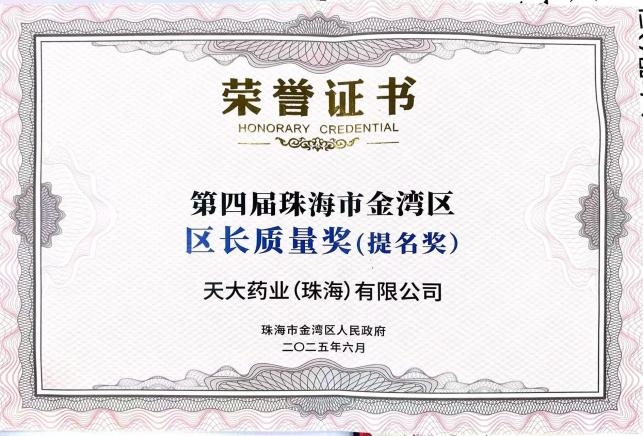 质量铸就口碑,荣誉见证实力。9月16日,天大药业(珠海)正式领取质量奖证书与牌匾,这一荣誉是对公司“以质量为生命”经营理念的极致褒奖。作为医药行业的核心生命线,质量管控贯穿于公司运营的每一个环节:从原材料采购的严格筛选、生产过程的精细化管控,到成品检验的层层把关,公司建立了优于国家标准的“天大标准”,构建起全流程、可追溯的质量保障体系,以匠工精神守护每一粒药品的安全与有效,用实际行动践行“您的健康是天大的事”的核心承诺。