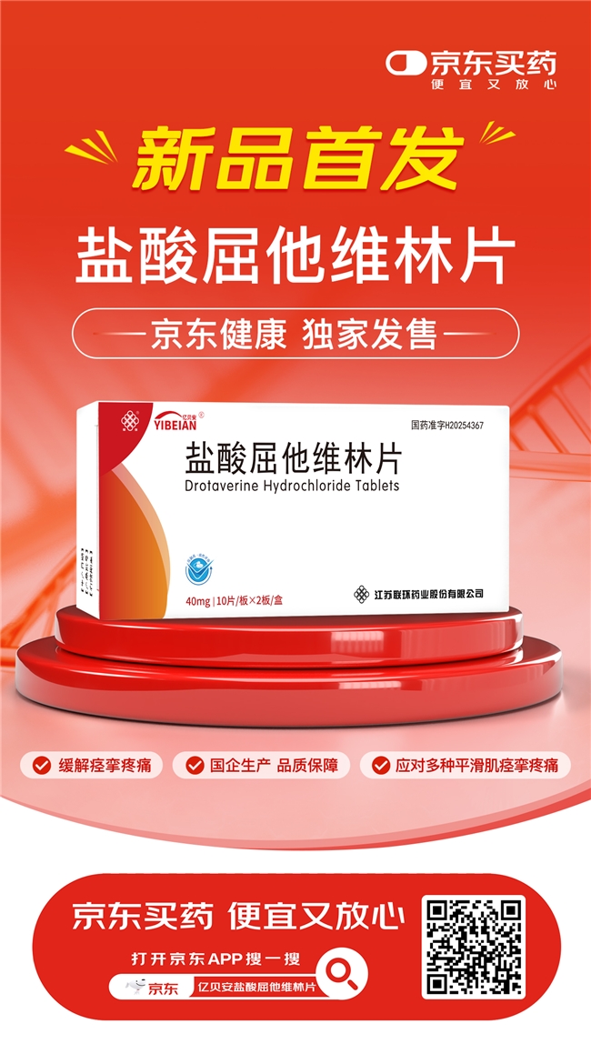 12月15日,由江苏联环药业股份有限公司推出的首仿药物盐酸屈他维林片(商品名:亿贝安®),在京东健康线上首发,为患者提供了品质可靠、可及性高的治疗新选项。京东健康将发挥“新特药全网首发第一站”的能力优势,加速药品惠及广大患者,助力缓解用药难问题。