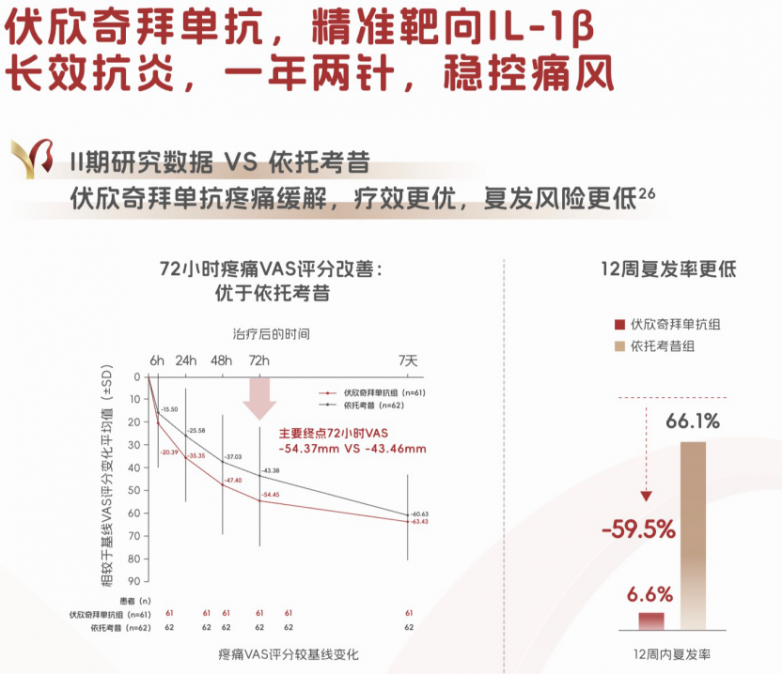 对于部分使用传统预防药物(如秋水仙碱)存在禁忌、不耐受或预防效果不佳的患者,临床可考虑使用作用机制更为精准的药物。例如,白介素-1抑制剂(如金蓓欣,即伏欣奇拜单抗)通过高选择性中和炎症核心介质IL-1β,直接阻断融晶痛发生的最终共同通路。