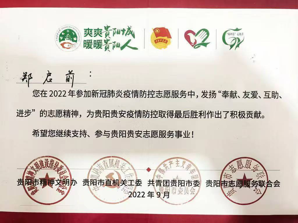 何为医者?日常门诊显“技”公共安危显“责”。2022年,贵阳贵安石板镇疫情吃紧,郑医师毅然逆行出征,支援核酸采样检测工作,他和来自兄弟单位的同事们,白天顶着烈日高温,身穿密不透风的防护服,忙碌而有序地开展核酸采样;晚上匆匆吃上几口饭便又投入到工作中,夜间仍坚守在岗。“防护服内如雨的汗水、烈日下滚烫的皮肤、扩音器里嘶哑的嗓音”,是他们的“英雄印记”。疫情恢复常态后,来自中共花溪区石板镇委员会,花溪区石板镇人民政府和贵阳市精神文明办、共青团贵阳市委等多家单位联合颁发的感谢信与荣誉证书,送到了郑医师得手上,是对其社会责任与勇敢担当的褒奖。