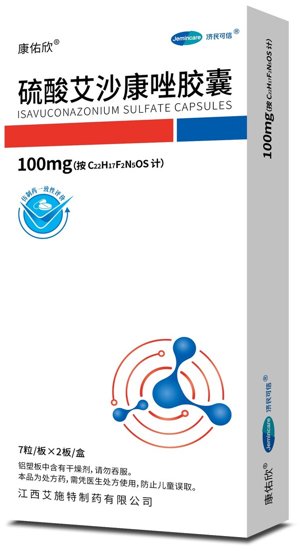 济民可信自主研发抗真菌药物硫酸艾沙康唑胶囊已获得国家药品监督管理局批准上市